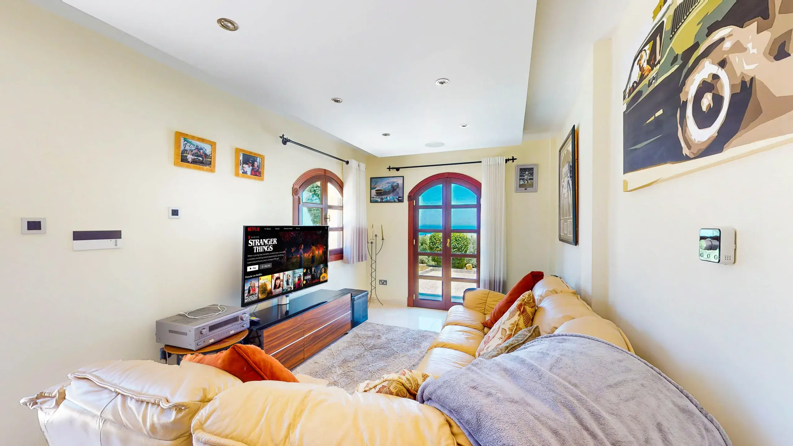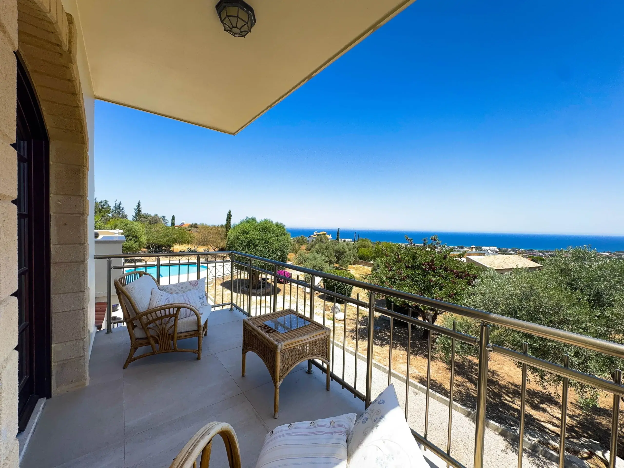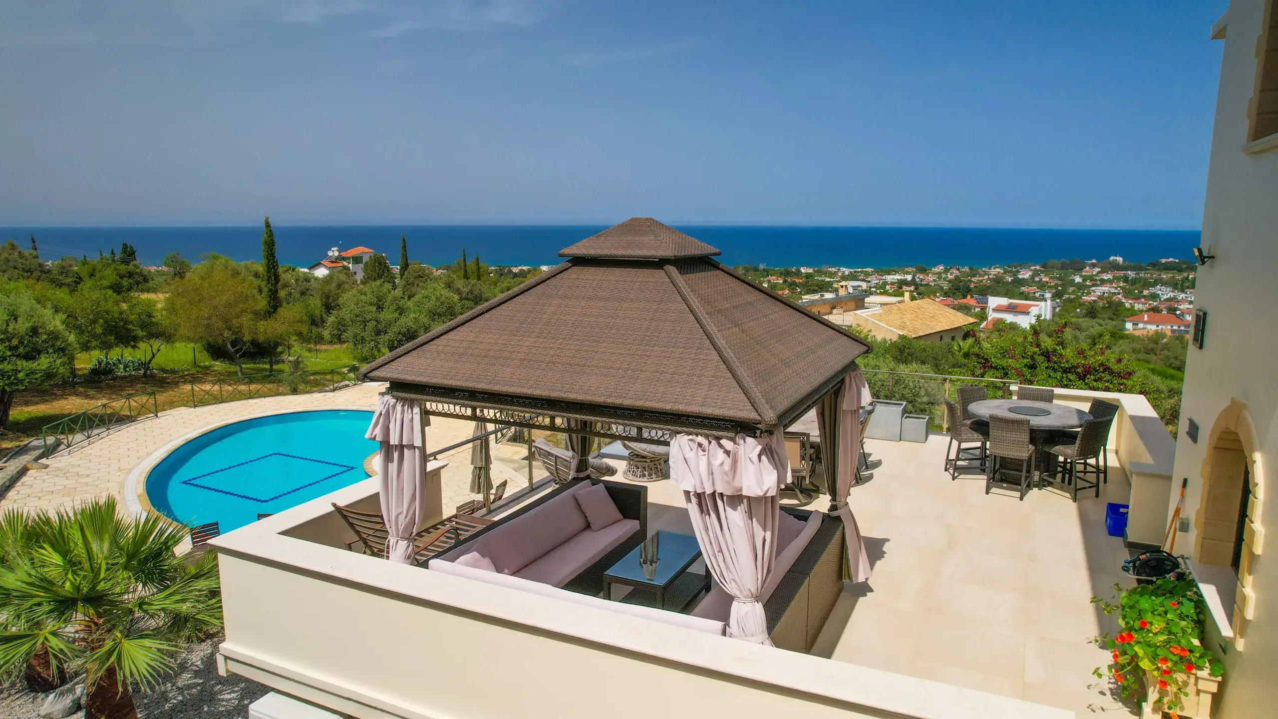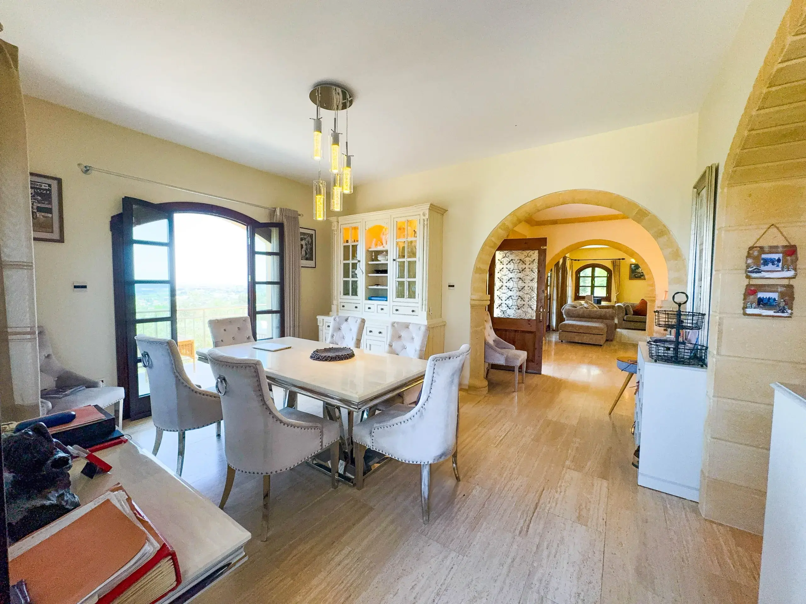 - Wohnkomfort: Lichtdurchflutete Räume mit Steinböden, ein eleganter Marmorkamin und moderne Inverter-Klimasysteme sorgen das ganze Jahr über für ein perfektes Raumklima.
