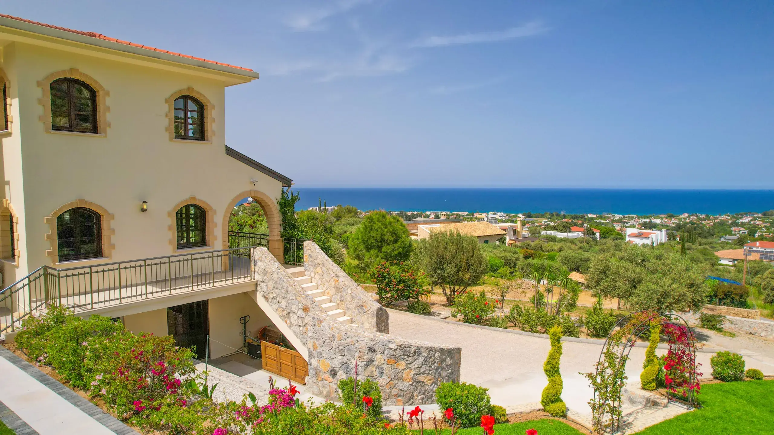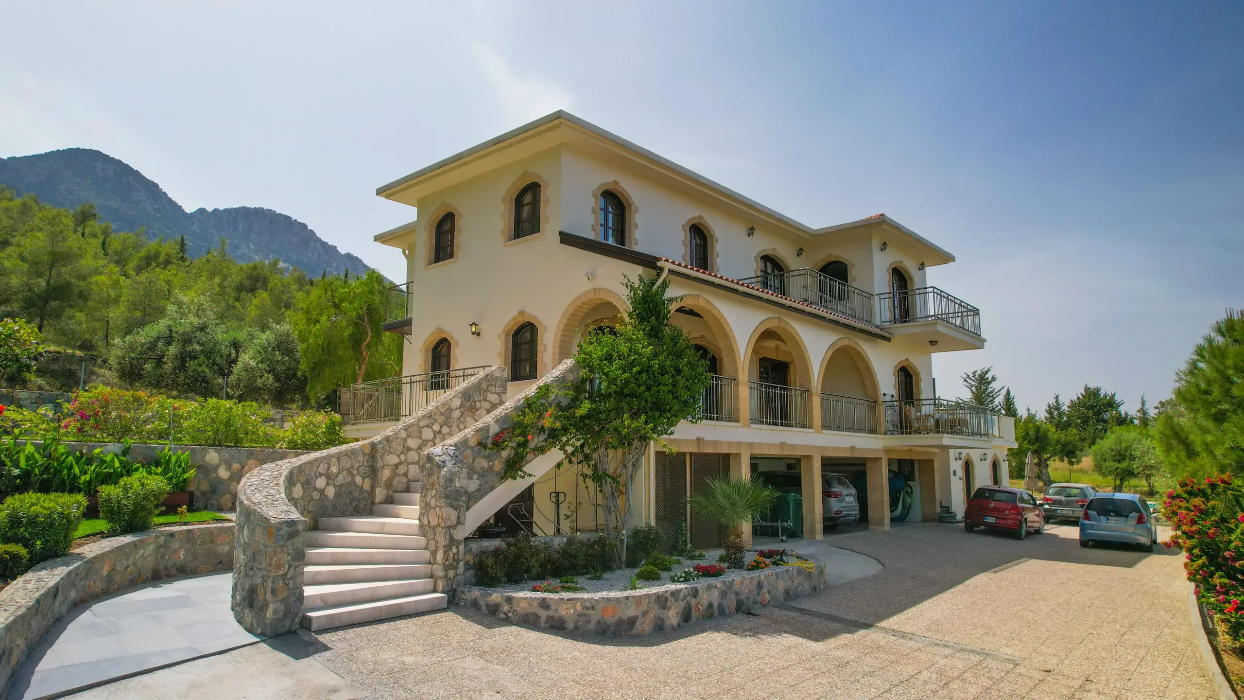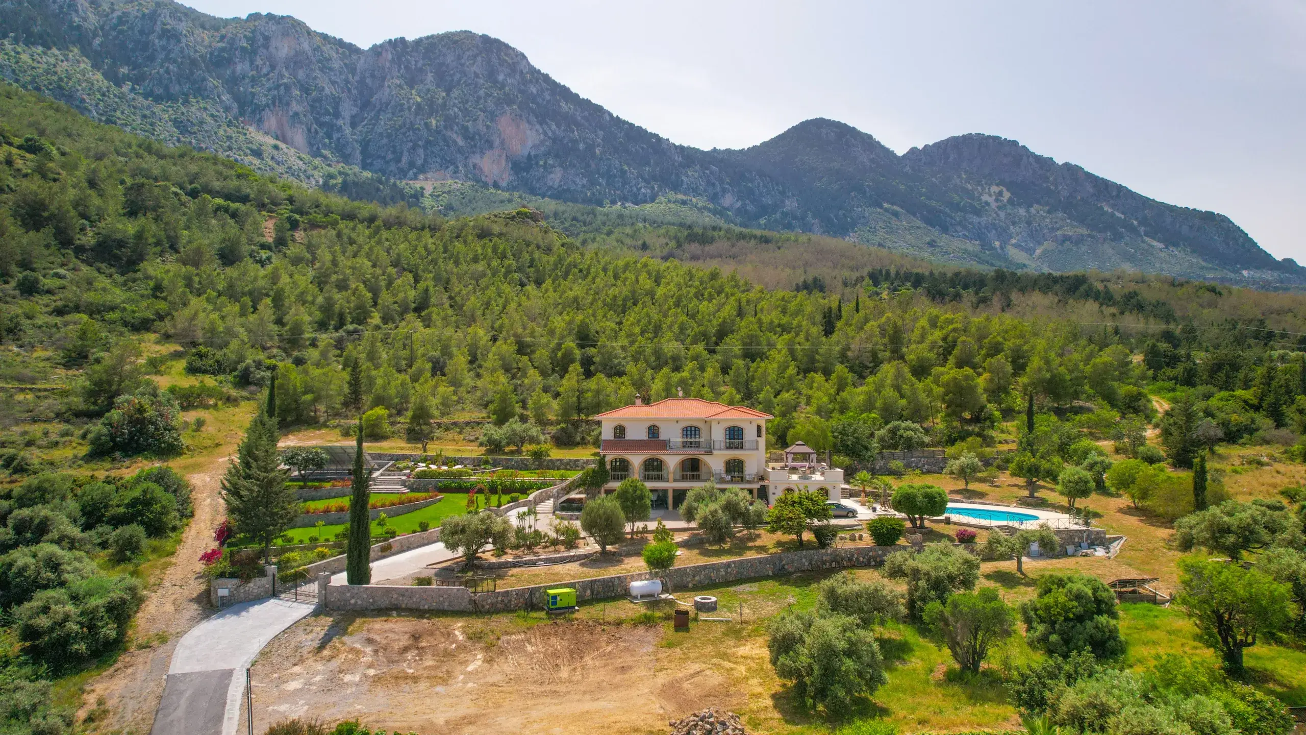Erleben Sie mediterranen Lifestyle auf höchstem Niveau. Diese außergewöhnliche Villa in Lapta, Kyrenia, bietet auf einer Wohnfläche von 350 m² eine perfekte Symbiose aus traditioneller nordzyprischer Architektur und modernstem Luxus. Gelegen auf einem beeindruckenden, 4.166 m² großen Grundstück, garantiert dieses Anwesen absolute Privatsphäre und einen unverbaubaren Panoramablick auf die Küste und das Gebirge.