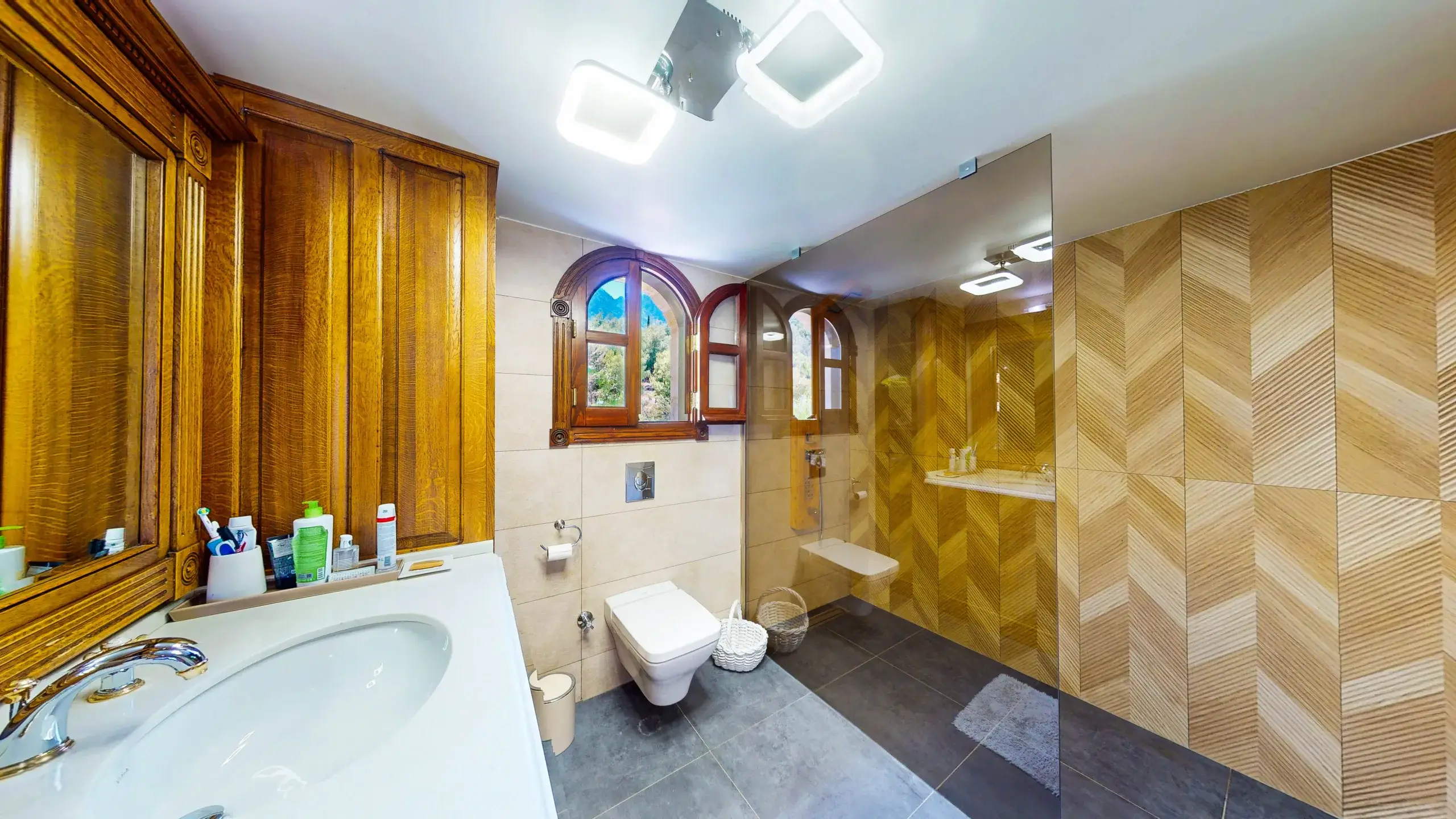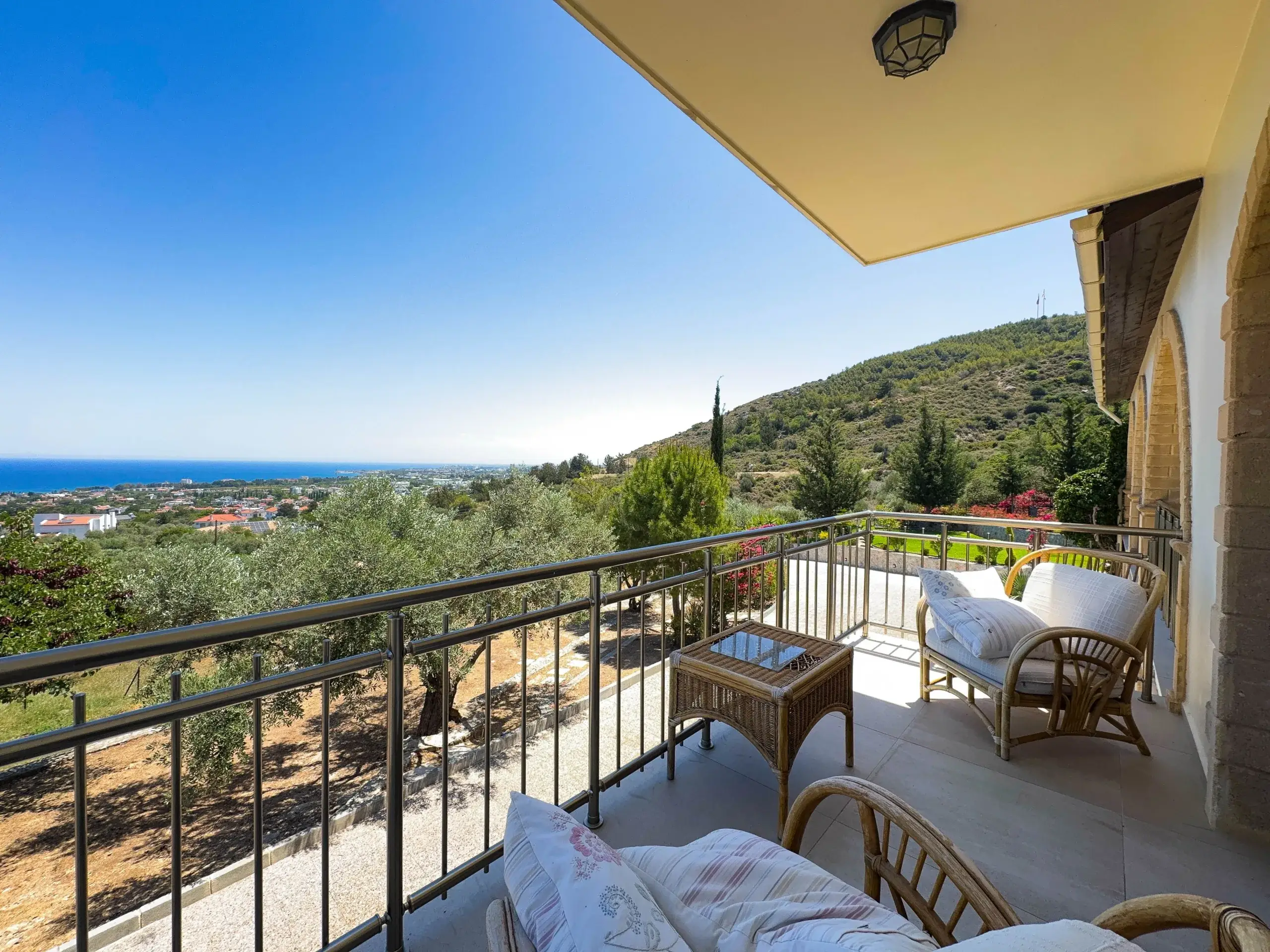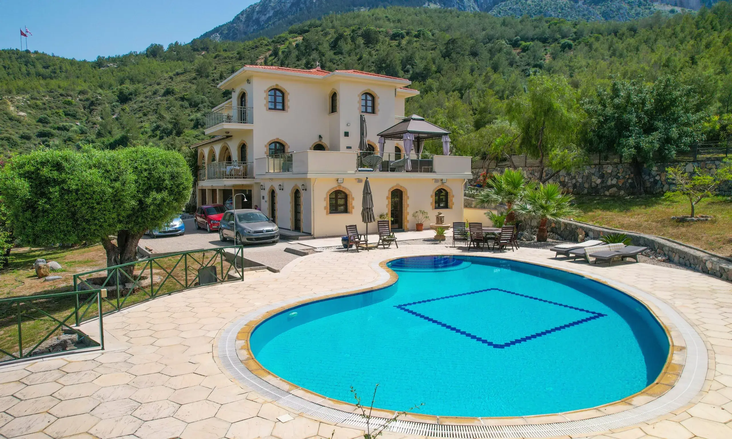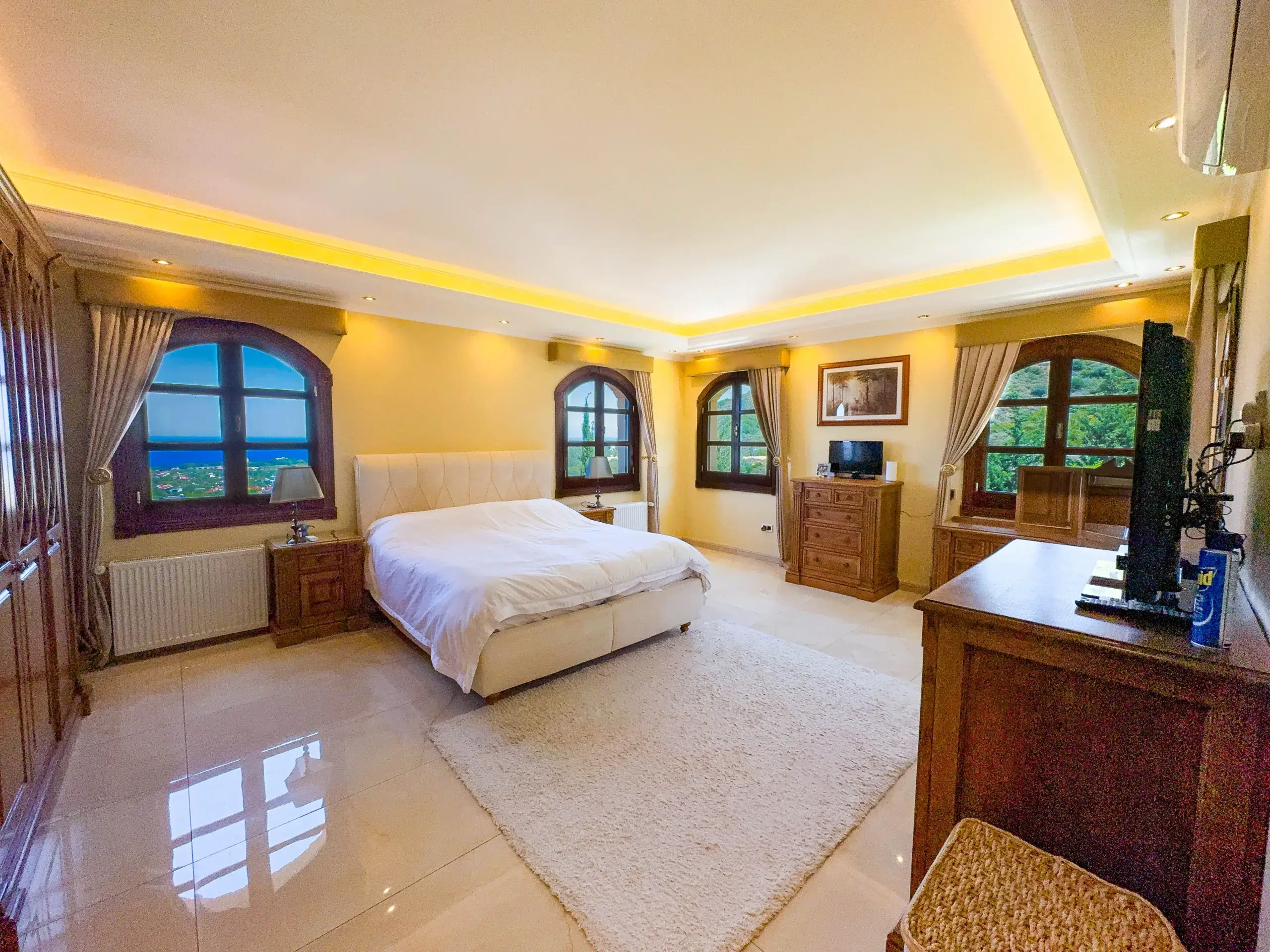 Erleben Sie mediterranen Lifestyle auf höchstem Niveau. Diese außergewöhnliche Villa in Lapta, Kyrenia, bietet auf einer Wohnfläche von 350 m² eine perfekte Symbiose aus traditioneller nordzyprischer Architektur und modernstem Luxus. Gelegen auf einem beeindruckenden, 4.166 m² großen Grundstück, garantiert dieses Anwesen absolute Privatsphäre und einen unverbaubaren Panoramablick auf die Küste und das Gebirge.