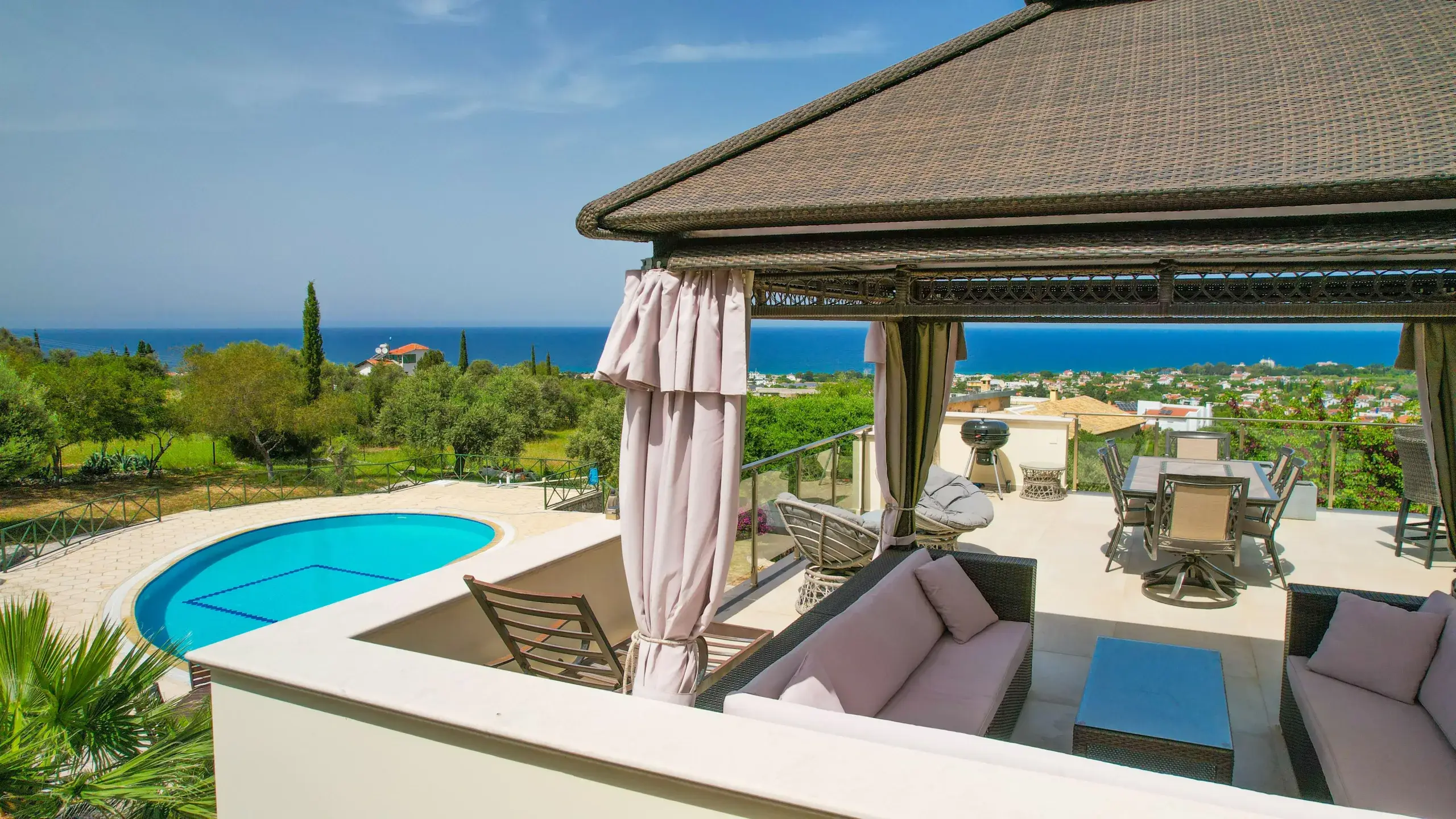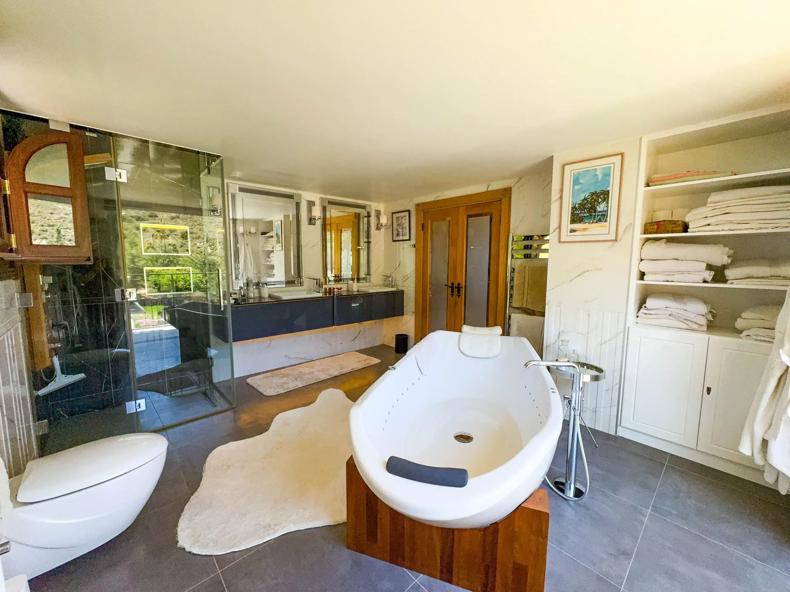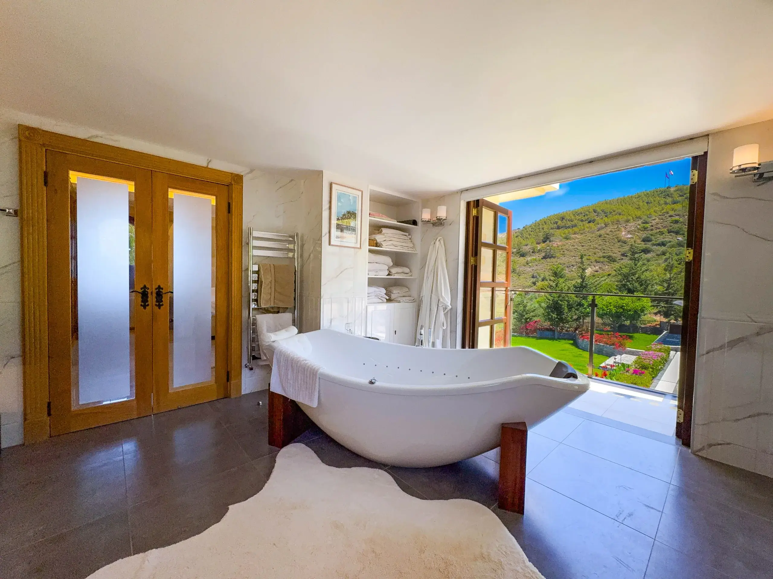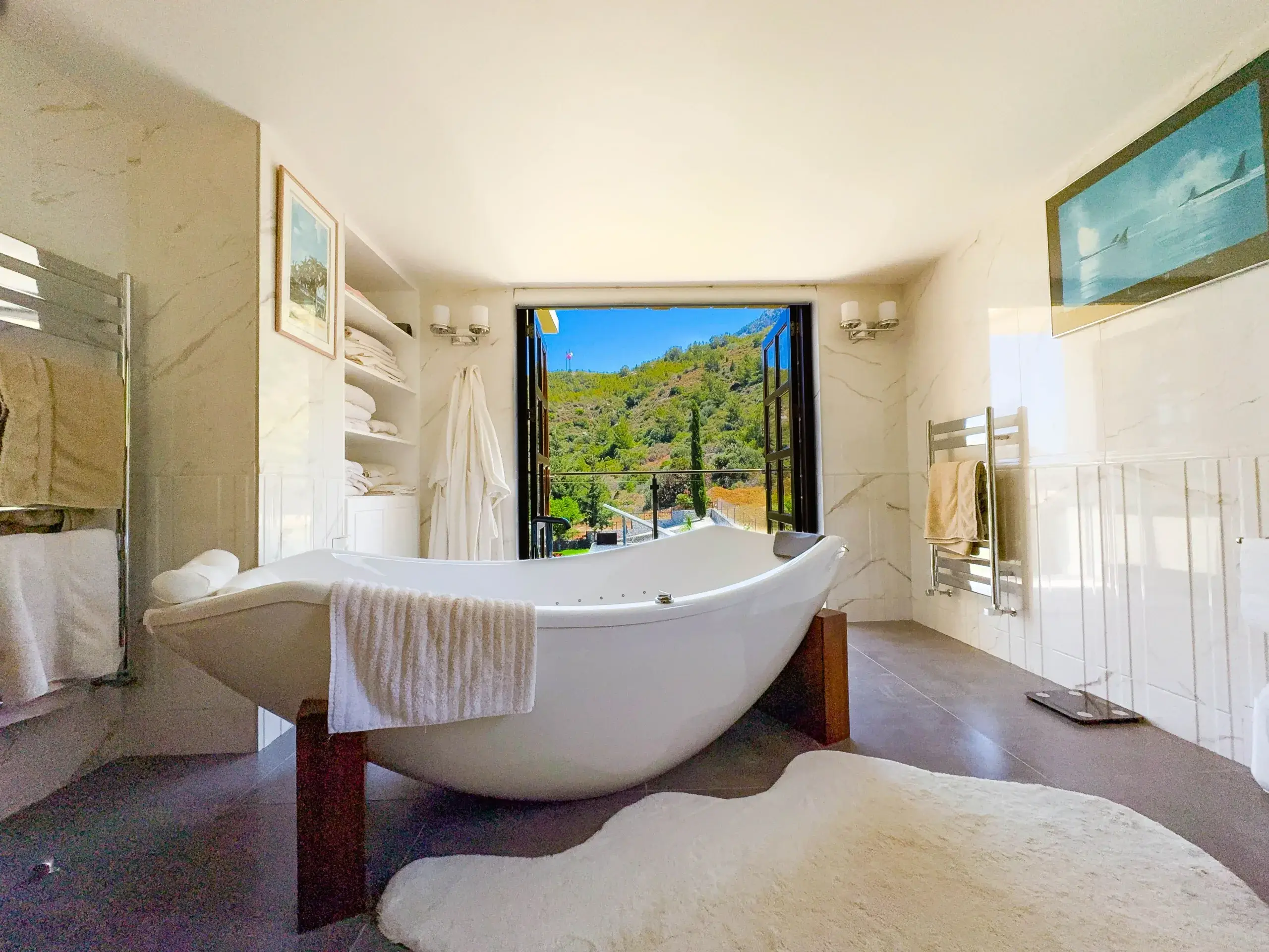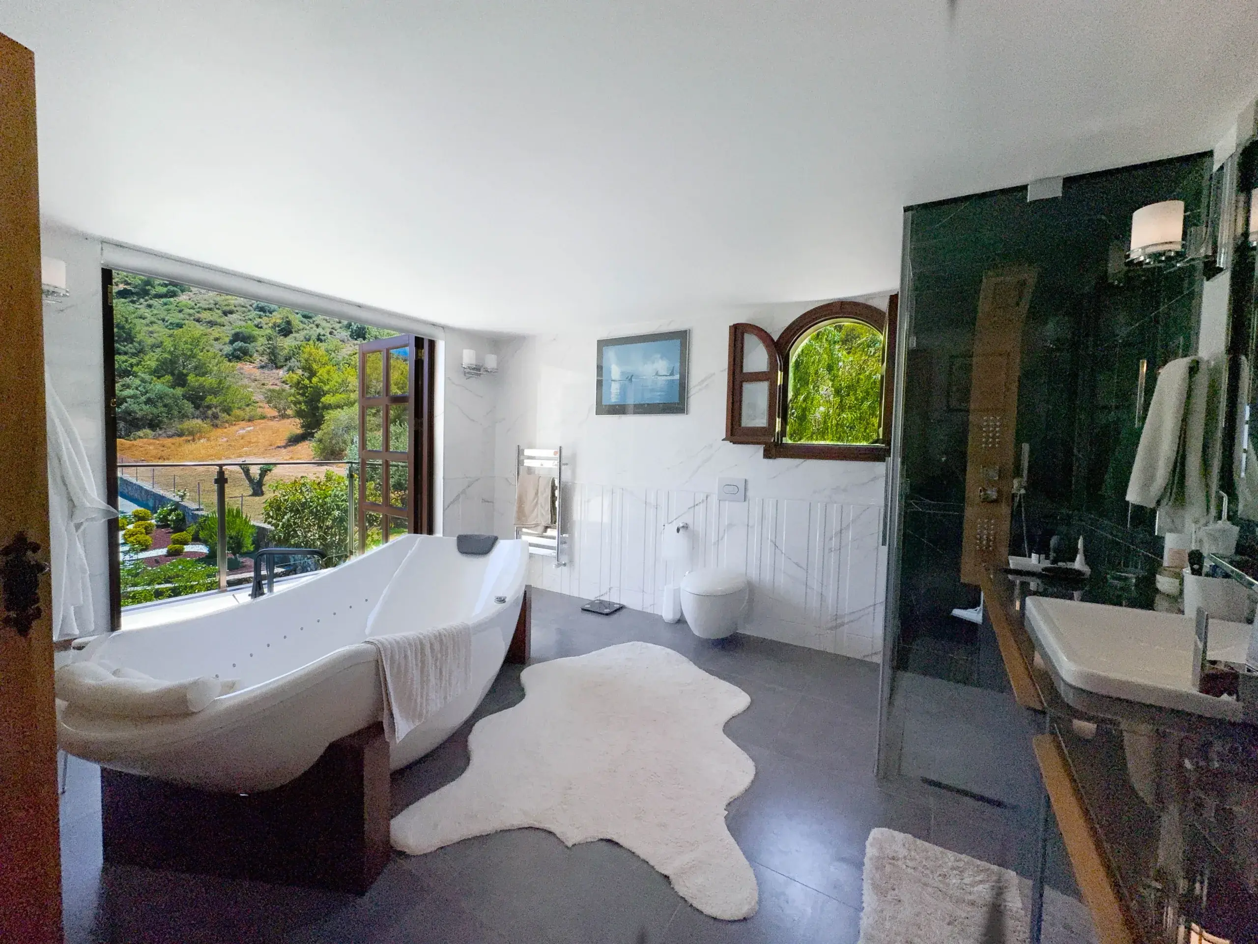 - Master-Suite: Ein Rückzugsort der Extraklasse mit freistehender Whirlpool-Badewanne, maßgefertigten Eichenmöbeln und privatem Balkon mit Blick auf das Mittelmeer.
