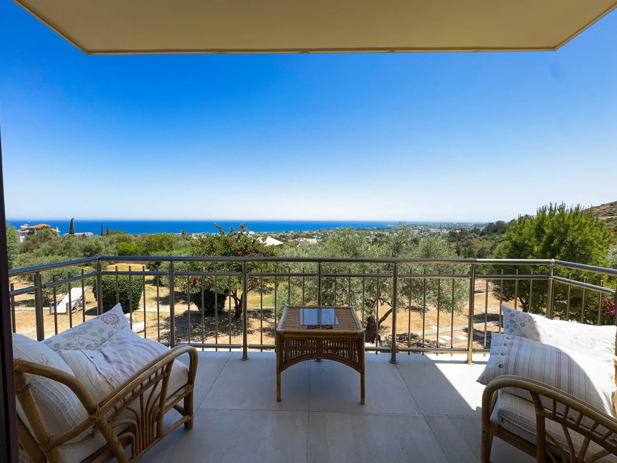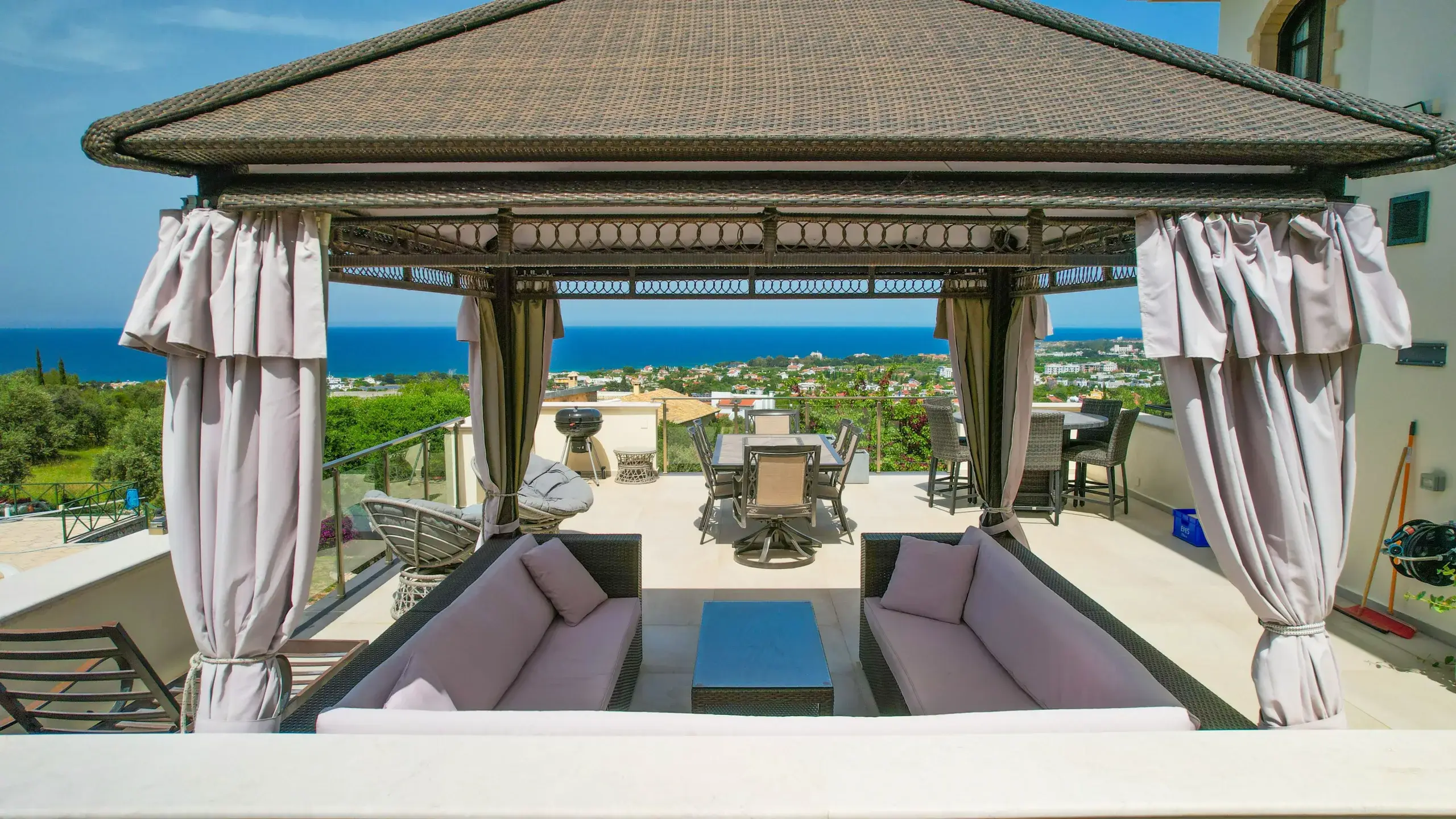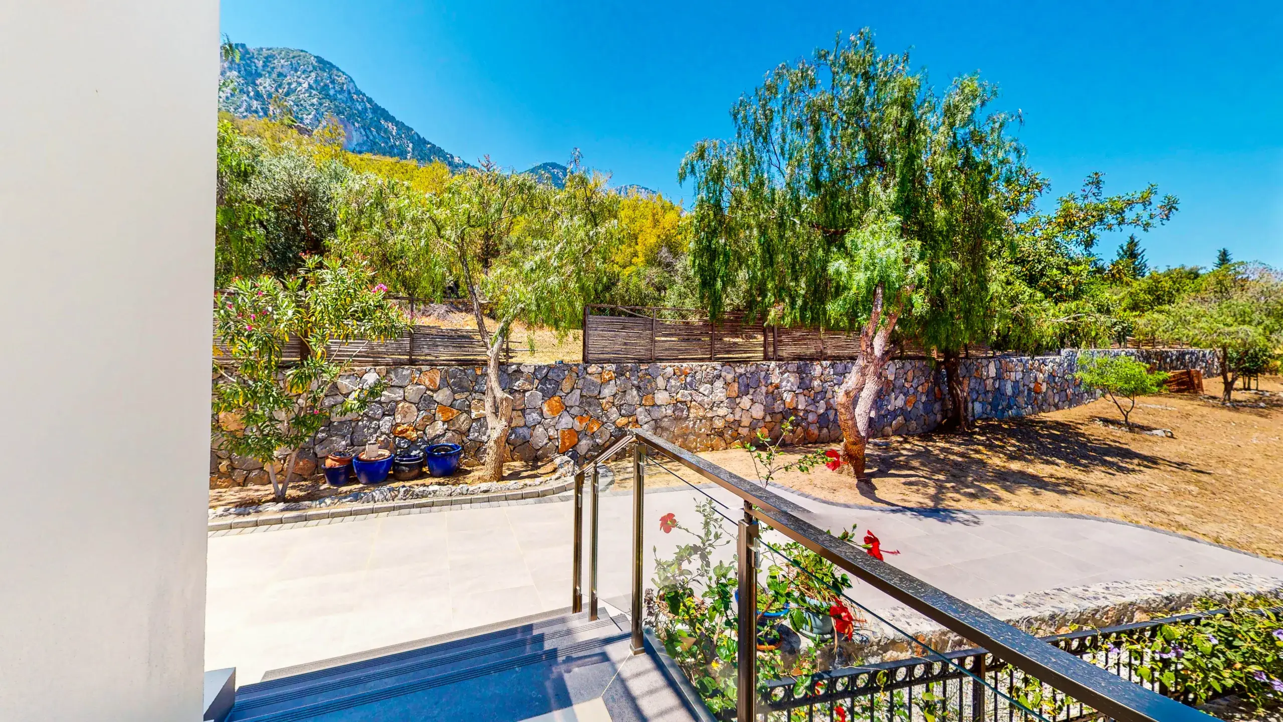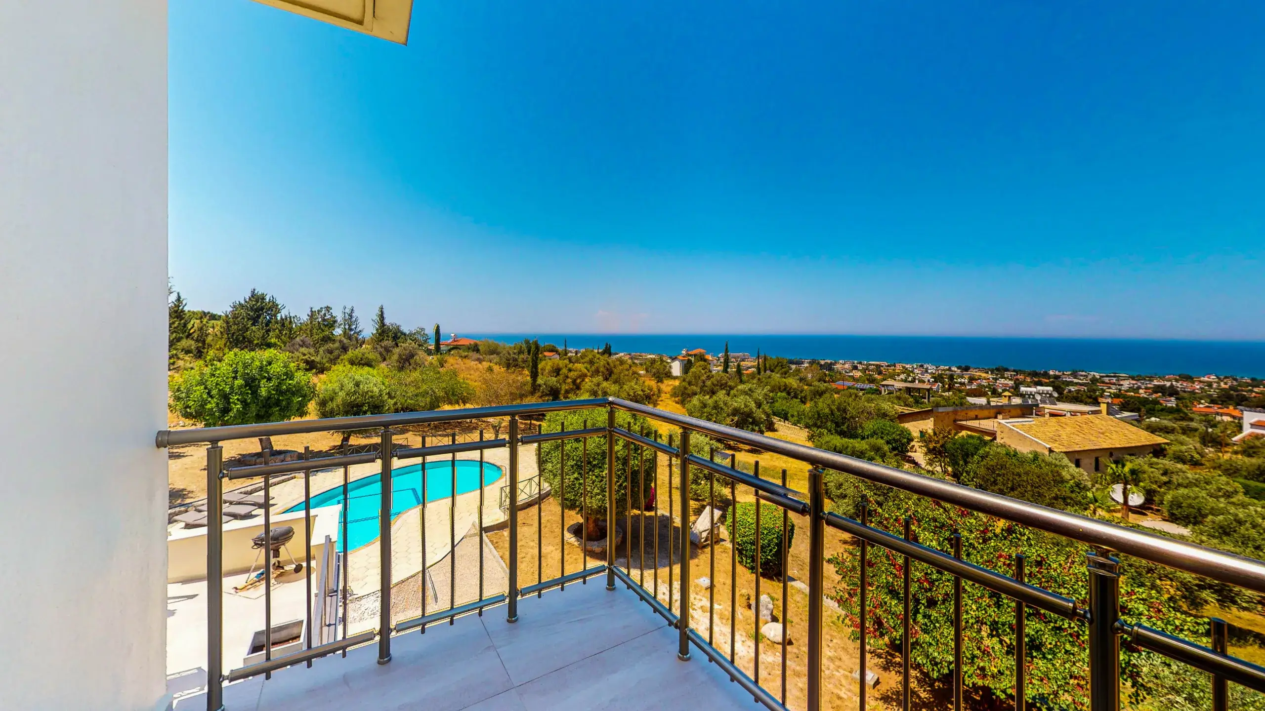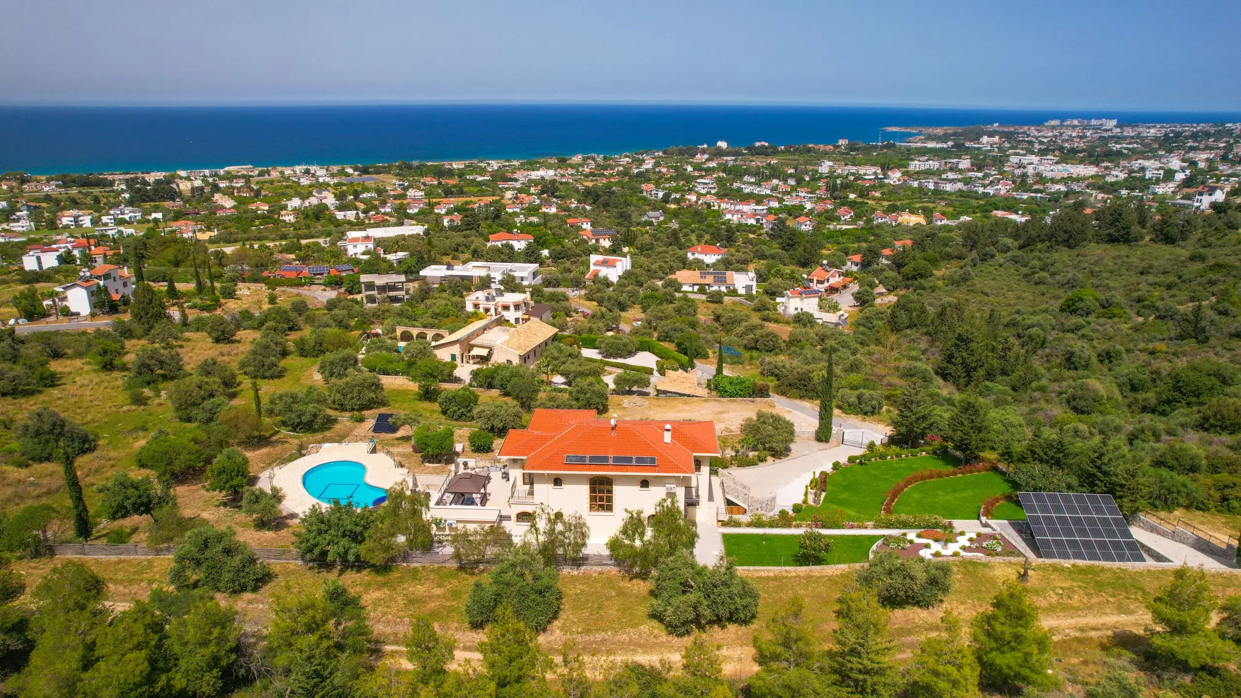 Die Villa liegt am Ende einer ruhigen Sackgasse in der begehrten Region Lapta. Trotz der privaten Lage sind erstklassige Hotels (z.B. Merit Royal), Strände (Sardunya Bay, Camelot Beach) und Supermärkte in nur wenigen Autominuten erreichbar. Die Stadt Girne (Kyrenia) ist ca. 15 Minuten entfernt.