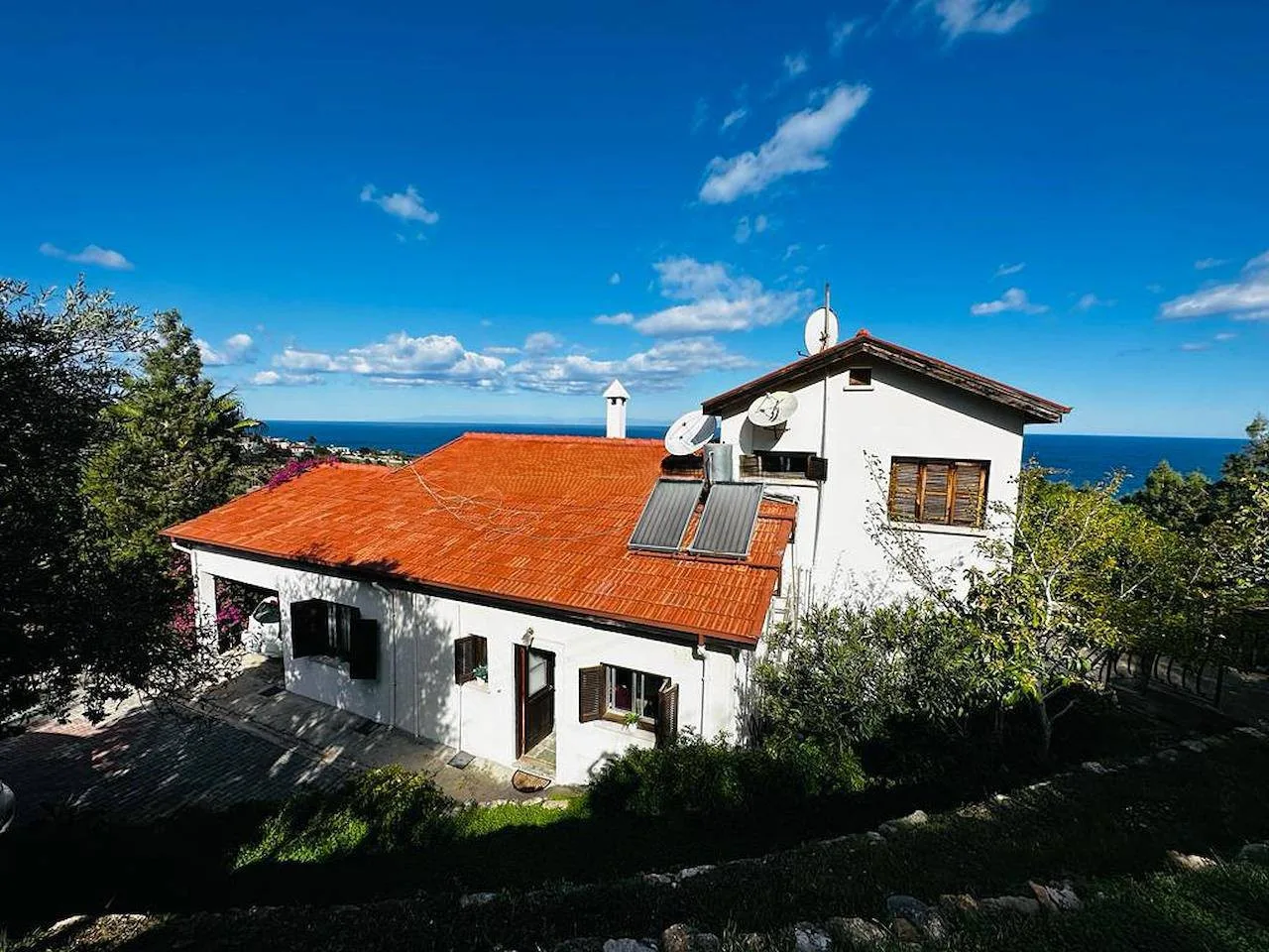 In den malerischen Hügeln von Kayalar, westlich von Kyrenia, erwartet Sie ein wahres Immobilien-Juwel. Diese freistehende Charakter-Villa besticht durch ihre privilegierte Lage auf einem großzügigen Grundstück von 1.393 m² und bietet einen unvergleichlichen Panoramablick auf das azurblaue Mittelmeer sowie die markante Gebirgskette Nordzyperns. Ein besonderes Merkmal für Sicherheit und Werthaltigkeit ist die begehrte Pre-74 Title Deed (Eigentumsurkunde).
