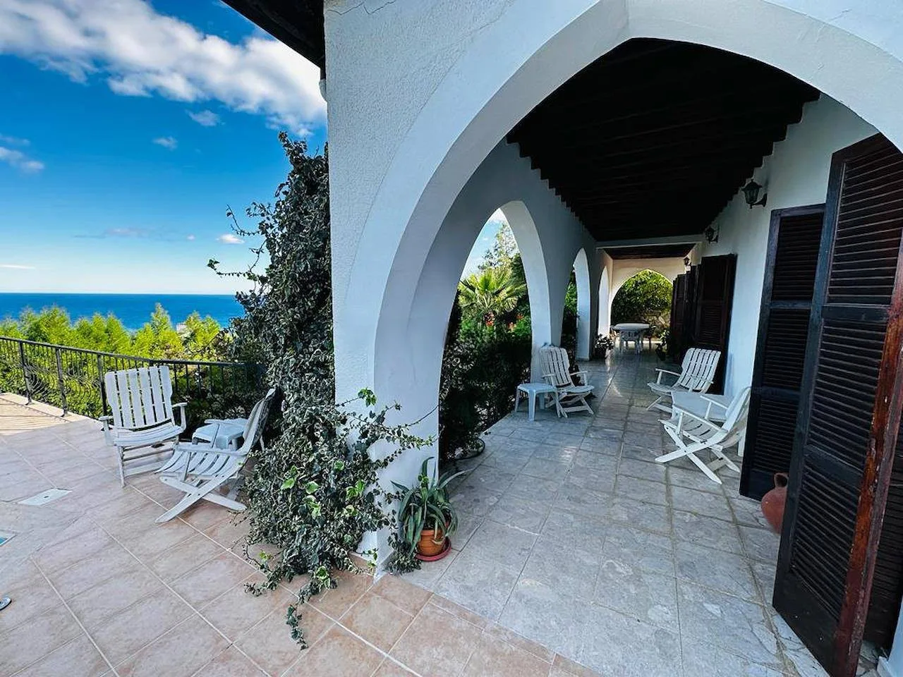 - Master-Suite: Auf der oberen Ebene gelegen, bietet sie ein privates Bad, eine große Klimaanlage und Zugang zu einem spektakulären Balkon mit Blick auf das Meer und die Berge.