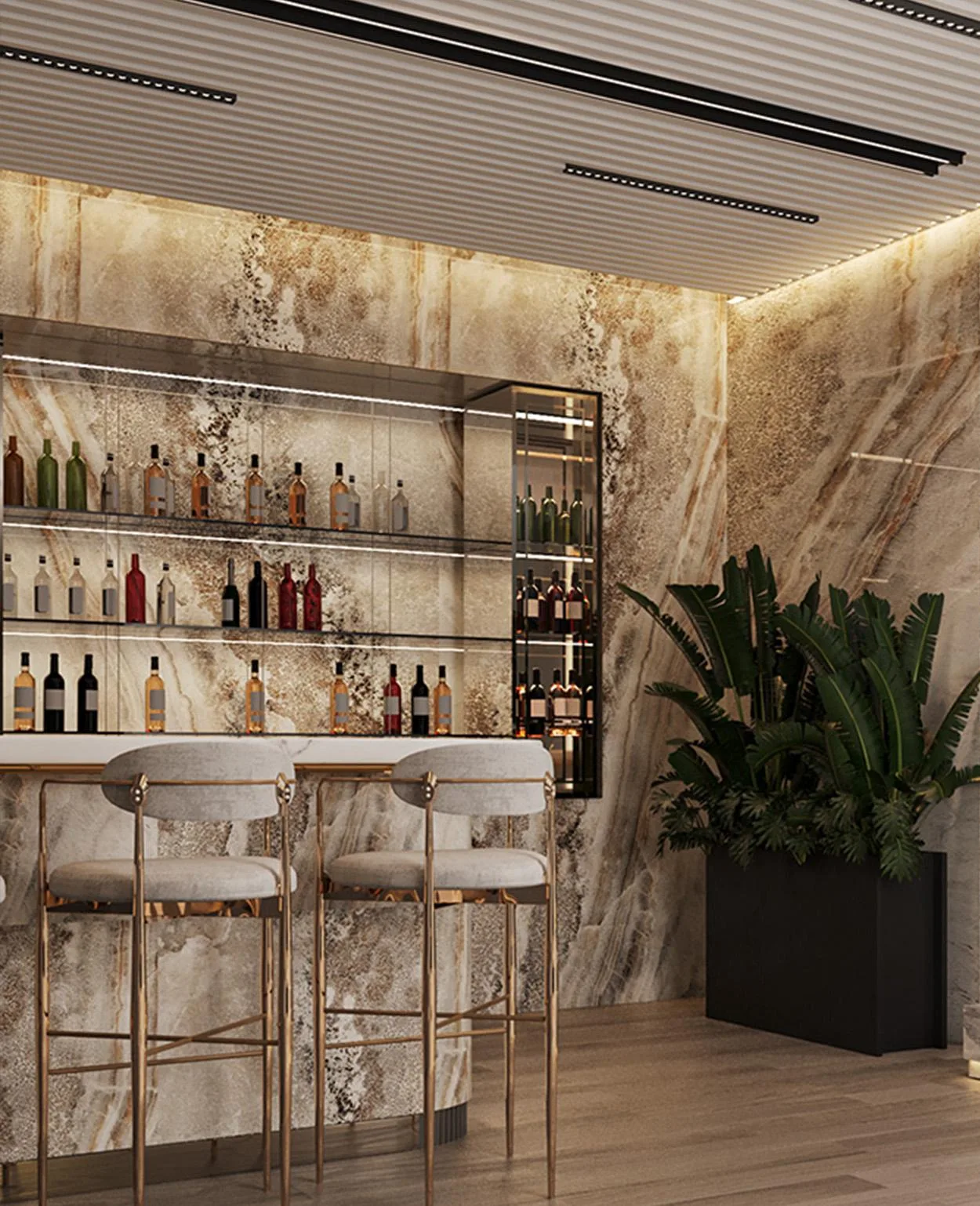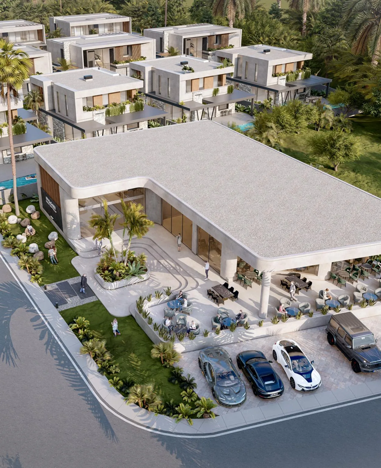 - Type B (4 Einheiten): Mit einer Gesamtfläche von ca. 402 m2 bieten diese Einheiten ein kompaktes, aber dennoch äußerst luxuriöses Raumkonzept mit großzügigen Terrassenflächen.