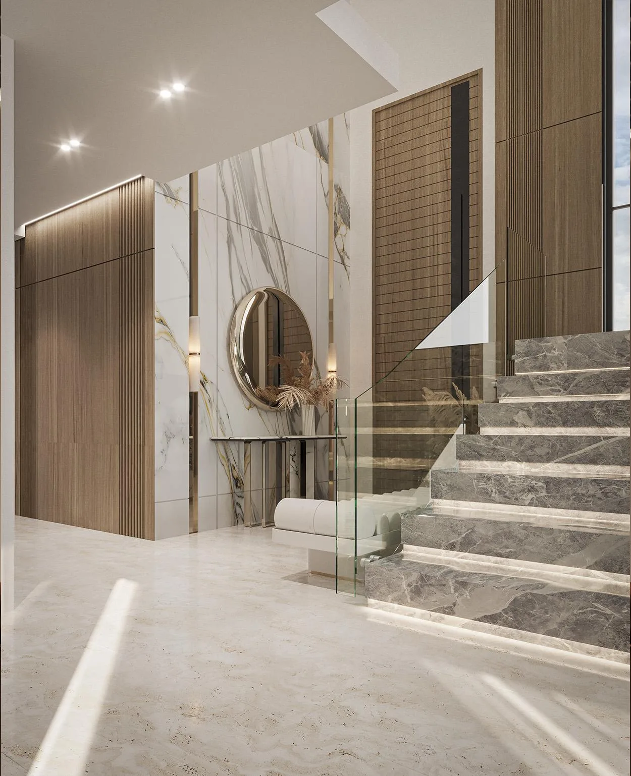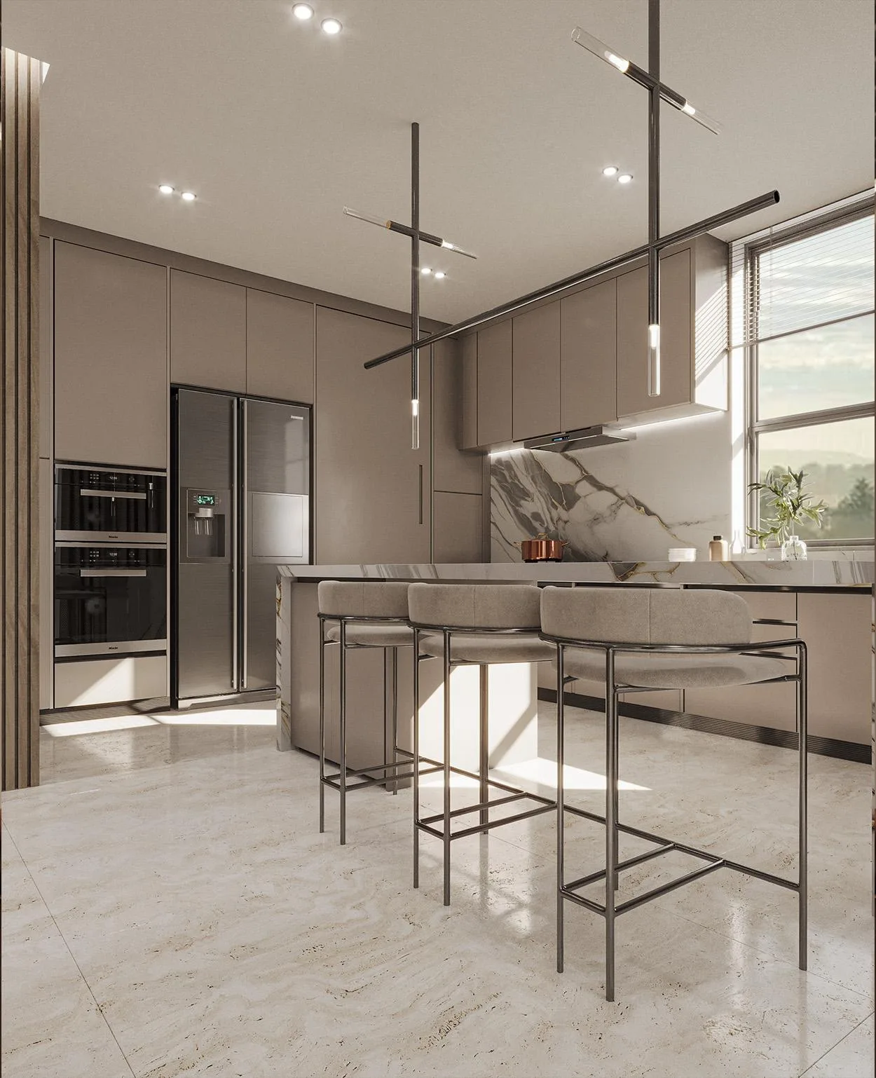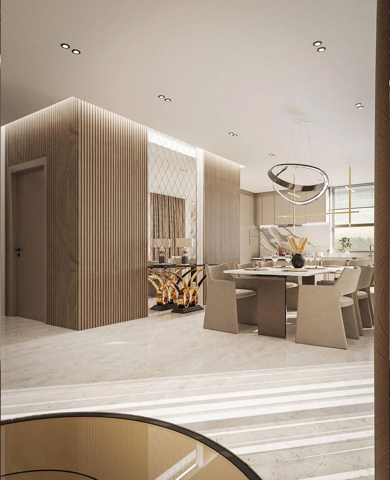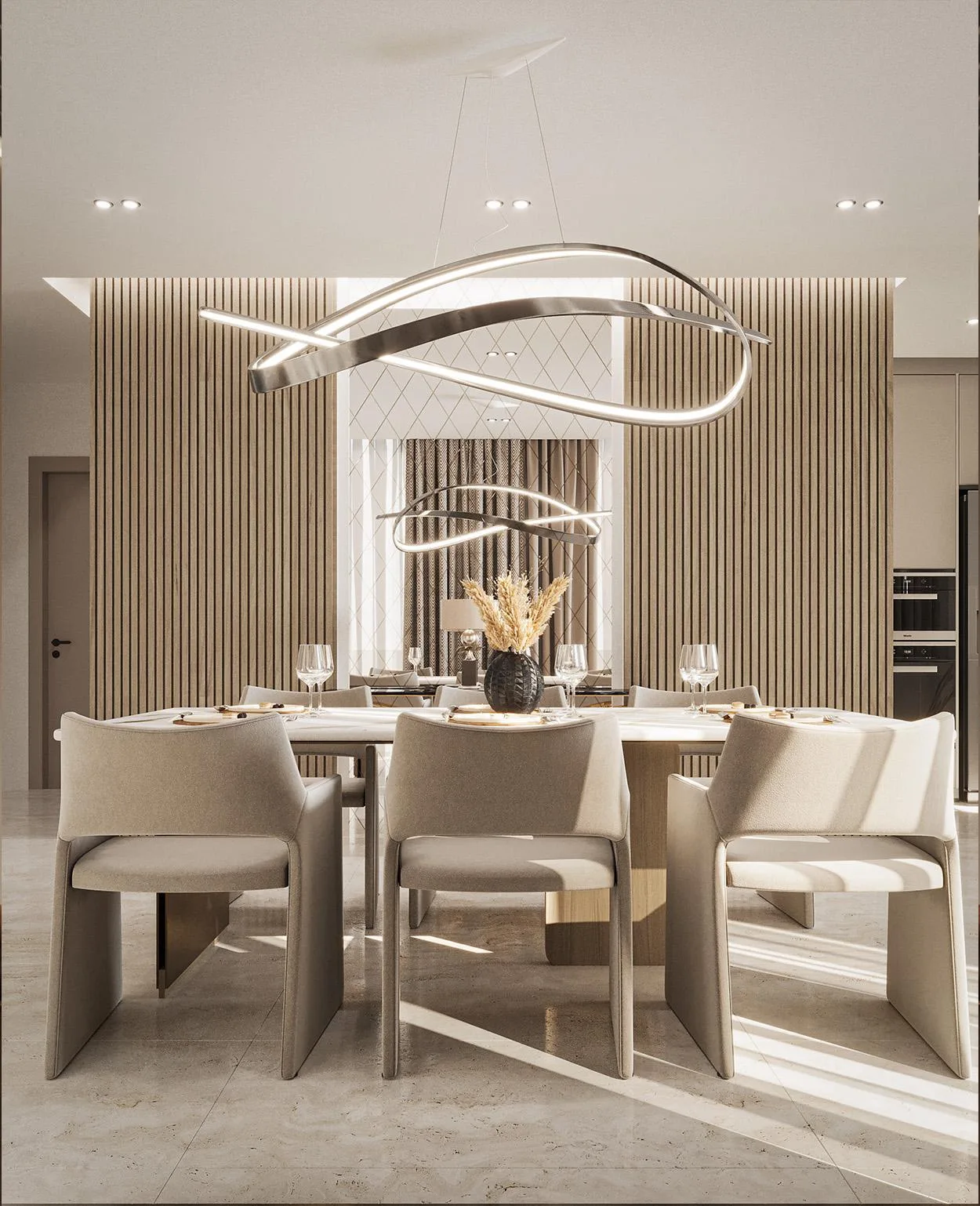 Hochwertige Oberflächen: Böden aus Premium-Keramikfliesen (bis zu 280 x 120 cm) und Designer-Böden der Marke EGGER verleihen den Räumen eine zeitlose Eleganz.
