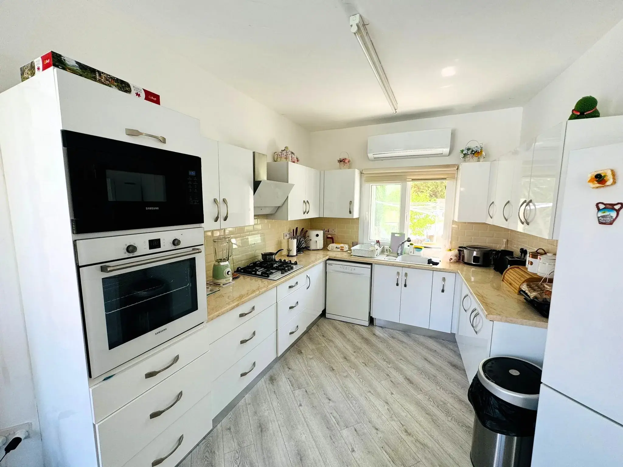 Das Anwesen besticht durch eine handverlesene Ausstattung: Der helle Wohnbereich mit edlem Parkettboden wird durch einen elektrischen Kamin mit Marmoreinfassung zum Herzstück des Hauses. Die moderne Küche glänzt mit hochwertigen Markengeräten und massiven Granitarbeitsplatten. Die Doppelzimmer  eines davon im Erdgeschoss ideal als Bibliothek oder zweiter Wohnraum nutzbar, bieten direkten Zugang zu weitläufigen Balkonen mit weitem Blick.