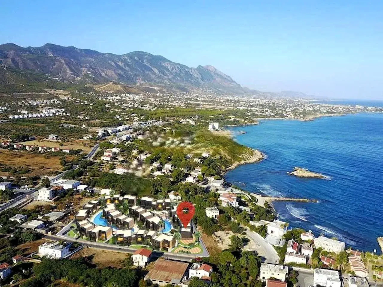 Lage, Lage, Lage sagt alles über dieses einzigartige Wohnen auf einer Fläche von 14.000 Quadratmetern in Nordzypern. Die Anlage liegt an einem der attraktivsten Orte der Kyrenia (Girne). Es ist nur wenige Schritte vom tiefblauen Akdeniz mit der majestätischen Bergkette im Hintergrund entfernt.